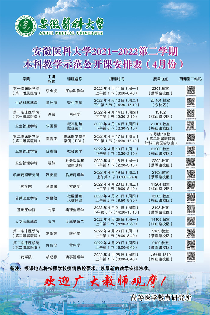 2021-2022第二学期本科教学示范公开课安排表(4月份)