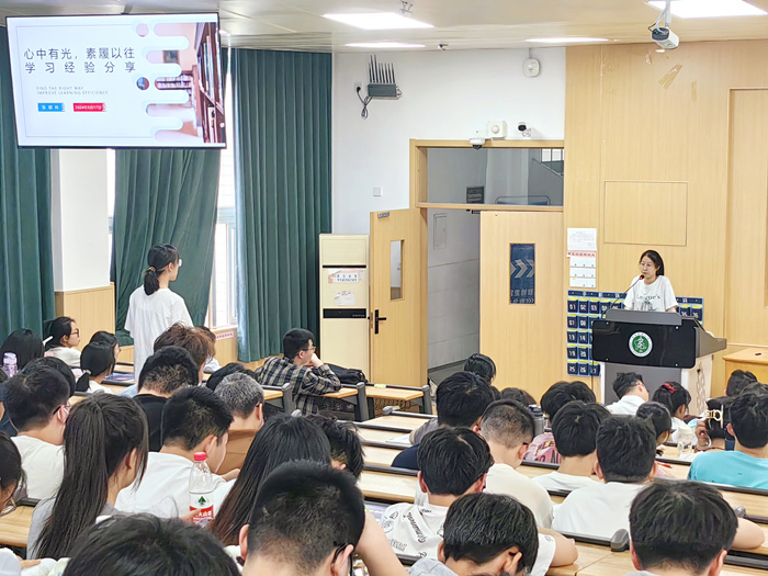 两位优秀学生代表详细梳理了在校期间的重要竞赛,从比赛时间、比赛流程、评分标准等方面进行细致讲解,并毫无保留地分享了各类课程预习、复习、考试方面的经验和方法,提醒学弟学妹们要学在日常、抓在经常、贯穿平常,培养良好的学习习惯,树立正确的学习观。互动环节,两位优秀学姐耐心细致地解答了项目申报、寻找团队、科研入门等方面的困惑,现场气氛十分活跃。