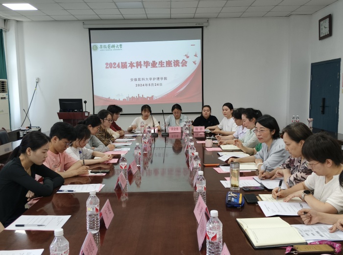 5月24日,护理学院召开2024届本科毕业生座谈会,聚焦强化护理专业教育教学质量及学生专业认同感,多措并举提升人才培养质量。该院副院长赵梅主持座谈会。