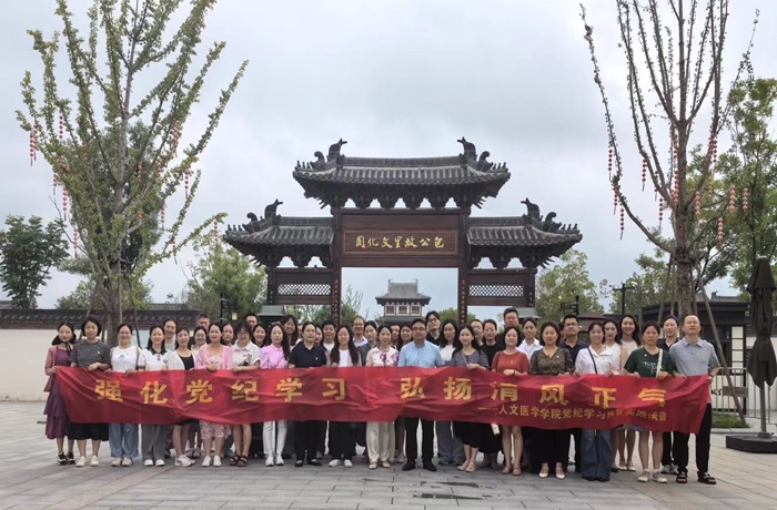 6月19日上午,人文医学学院组织全体党员前往廉政教育基地——包公故里文化园开展党员实践活动,推动党纪学习教育内化于心、外化于行,持之以恒推进全面从严治党。该院党委书记杨秀兰带队,院领导班子、教师党员等50余人参加活动。
