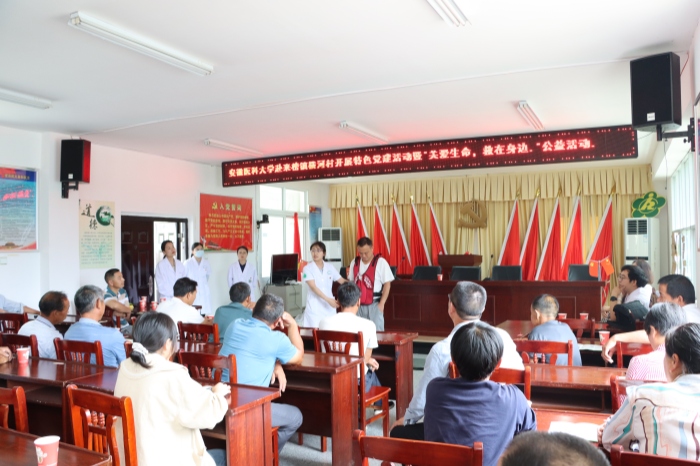 6月20日,实验教学中心联合基础医学院病理生理学教研室,前往岳西县来榜镇帮扶村开展“关爱生命,‘救’在身边”应急救护知识科普培训,当地400余名中学生、村干部和村民接受培训。