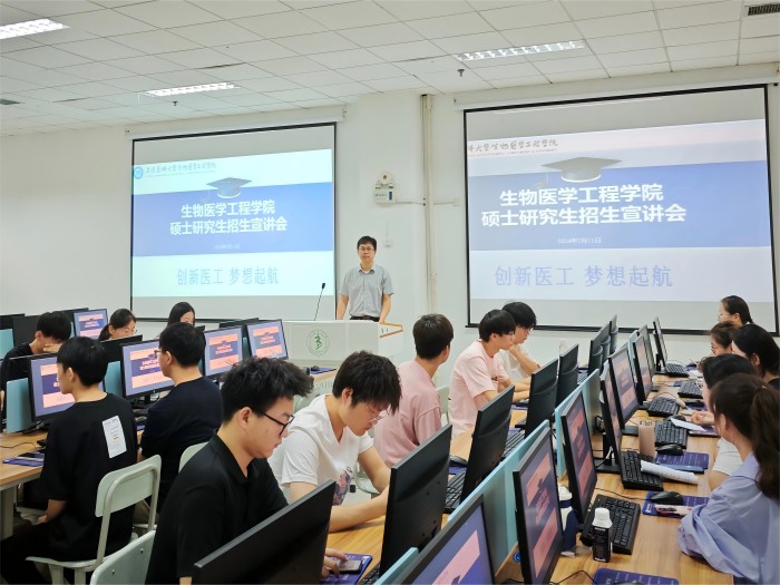 7月9日至12日,生物医学工程学院在校内以及蚌埠医科大学、皖南医学院开展多场研究生招生宣讲会,同时利用线上直播进行“大咖喊你来读研”招生宣传活动,进一步扩大宣传影响力。该院副院长周金华参与宣讲。