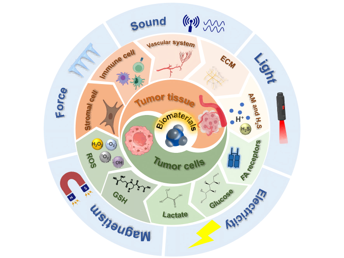 近二十年,生物材料在组织工程、生物成像、癌症治疗等领域的应用取得了重要进展,它可以运用到改善生物成像、药物递送、靶向治疗和诊断效果等各个方面。利用材料与细胞及组织微环境之间的复杂作用,可以最大限度地提高治疗效果,同时减少全身毒性和副作用。该研究简要介绍了肿瘤细胞和正常细胞组织之间的差异,以及使用纳米结构材料介导的肿瘤微环境的治疗策略,重点介绍了通过精确控制其组成、粒径、形状、结构、表面功能化和外部能量刺激等,实现局部精准的治疗策略与方法,系统总结了制造具有癌症细胞特异性细胞毒性的纳米结构的策略,并对生物材料设计与递送等纳米技术在肿瘤治疗中的挑战进行了总结和展望。