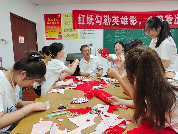 感受文化魅力,坚定文化自信。实践团前往安徽农耕民俗文化展览馆、叶春善故居——京剧宗师堂,深入了解大别山地区民俗文化和京剧的历史文化渊源,从中华优秀传统文化中汲取精神养分。在金寨县文化馆,同学们一边体验学习非遗剪纸技术,一边学唱大别山民歌与传统戏曲,感受中华优秀传统文化的独特魅力。“以潜移默化的方式将中华优秀传统文化融入社会实践‘大思政课堂,让青年学子扎实、扎深中华优秀传统文化的‘根’,坚定文化自信。”实践团指导老师说道。
