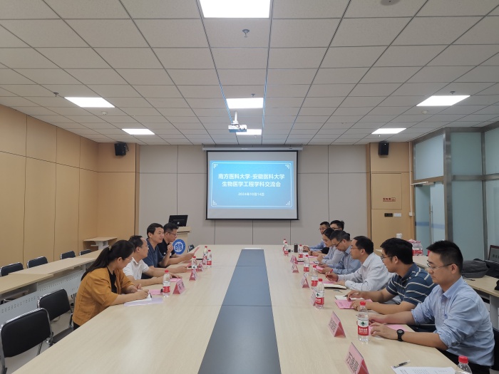 10月14日,南方医科大学生物医学工程学院副院长张煜一行,来我校生物医学工程学院开展学科交流及研究生招生宣传。生物医学工程学院院长钱海生出席交流会,副院长周金华主持交流会。