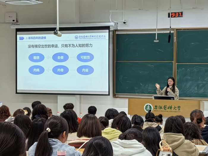 “五力引航”是学院围绕党建先锋力、思政浸润力、学风向心力、文化影响力、育人协同力等五个方面构建的品牌工程,多举措为打造高质量复合型卫生管理类人才奠定良好基础。为激发本科生科研热情、提升科研素养,学院开办科研实战训练营,主讲教师从早期科研准备开讲,实操演练与理论讲解相结合,让同学们掌握科研选题技巧、研究方法、问卷设计的原则以及常用统计软件操作步骤等重要内容,了解了培养批判性思维与自主研究能力的重要性。