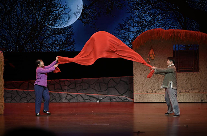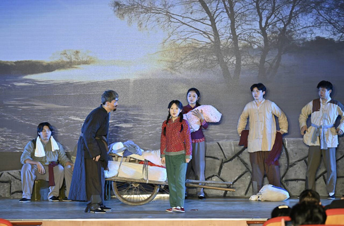 歌剧《向前》以点带面地描绘了淮海战役期间男女老幼齐上阵、家家户户支前忙的生动画卷,还原了其壮观场面。该剧深入挖掘了皖北民歌和地方戏曲等“非遗元素,在唱腔和合唱编配中融入了淮北花鼓戏、泗州戏、淮北梆子戏等戏曲的艺术特色,以更加新颖、现代的艺术形式展现了中华优秀传统文化。演出生动精彩,赢得现场师生的热烈掌声。