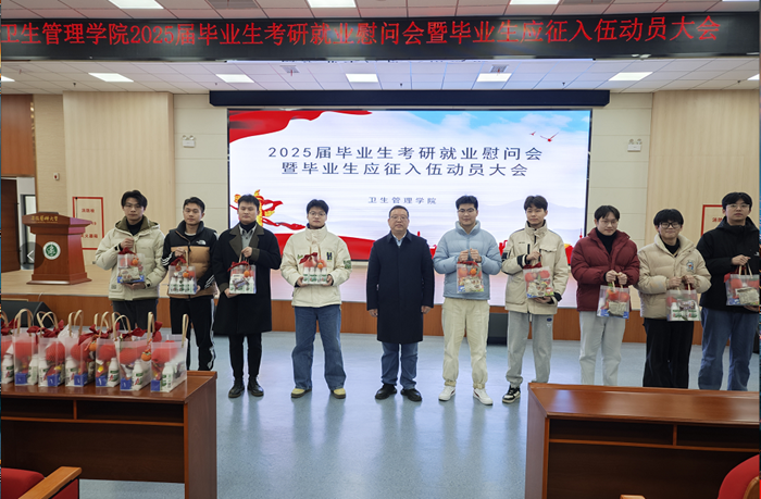 12月13日,卫生管理学院在东校区举行2025届毕业生考研就业慰问会暨应征入伍动员大会,院党委书记赵云峰出席会议并致辞。