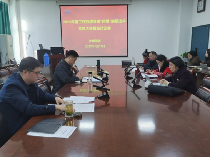 1月21日上午,护理学院召开2025年度工作务虚会暨“两委”换届选举党员大会工作报告讨论会。学院党委书记薛磊主持会议,院领导王磊、赵梅、李树雯出席会议。