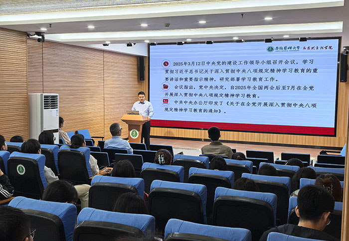 训练营邀请校马克思主义学院党委副书记、纪委书记余立教授作理论宣讲。他以《学习中央八项规定精神 立志做有理想、敢担当、能吃苦、肯奋斗的新时代好青年》为题,在宣讲中深入浅出阐释了中央八项规定精神的内在要求和实践逻辑。受训学员纷纷表示,将严格自我要求,树牢诚信理念,在强国建设、民族复兴伟业中彰显青春担当。
