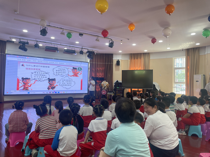 在新型家园幼儿园的活动现场,五彩缤纷的卡通贴纸和“健康能量勋章”迅速点燃了孩子们的热情。宣讲团队结合电影《哪吒之魔童闹海》,以“太乙真人减肥”引入主题,用童趣语言讲解均衡饮食、科学运动的“健康密码”。互动问答环节,孩子们争相举手,结合当天所学,积极分享自己对健康的理解。