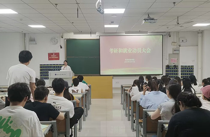 5月16日下午,药学科学学院组织召开2026届本科生就业动员大会暨考研经验分享会,推动加强非毕业年级本科生考研与就业指导,引导在校生树立科学职业发展观、成才观。