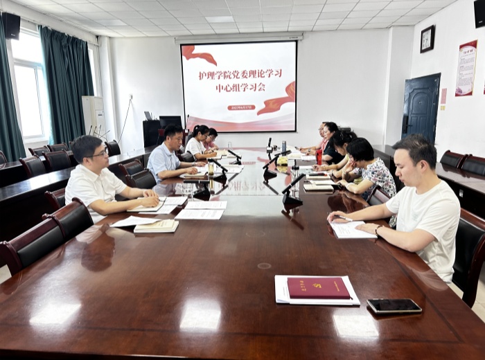 6月17日,护理学院党委理论学习中心组召开学习会,专题学习研讨校第九次党代会精神,院党委书记薛磊主持会议。