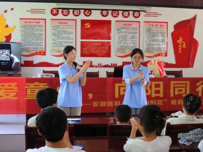 在巢湖市夏阁镇元通村,实践团为留守儿童打造“安全 + 文化”双主题课堂。实践团成员通过理论、示范、演练相结合的方式,教授心肺复苏、海姆利克急救法等技能,重点解析夏季溺水风险,让安全知识扎根心间。同步开展的文化浸润活动,让孩子们体验了太极拳,在绘制漆扇过程中感受非遗魅力;组织参观花苗地烈士陵园、慰问困难老人,在实践中传递关爱,让红色记忆与温情陪伴融入成长。