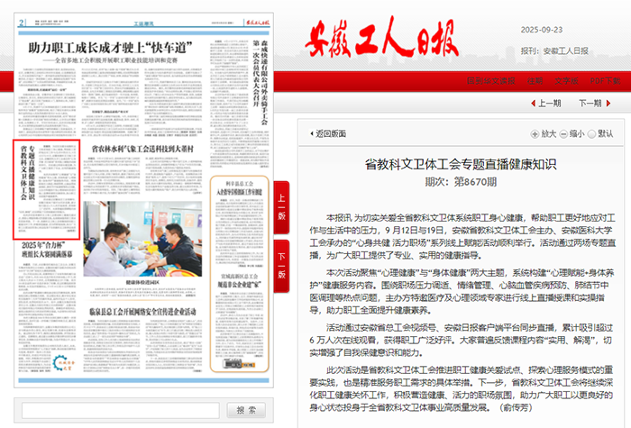 安徽工人日报:省教科文卫体工会专题直播健康知识