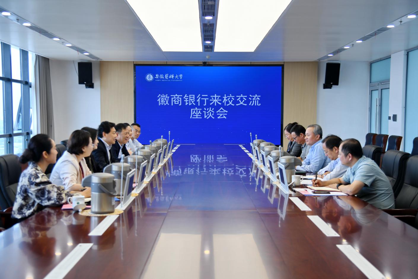 9月26日下午,徽商银行党委副书记、行长孔庆龙一行来校开展座谈交流。校长翁建平出席会议,校党委常委、副校长田仰华主持会议。