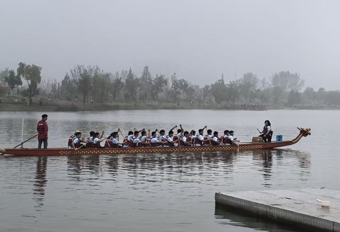 本次赛事汇聚了全市17所高校的龙舟劲旅,近400名学子同场竞技。比赛当日,阴雨绵绵却丝毫未减赛场热情。随着发令枪响,我校龙舟如离弦之箭般冲出起点,船头鼓手节奏铿锵,队员们动作整齐划一,船桨激起的水花与岸边观众的呐喊助威声交织在一起。面对多支往届强队的夹击,我校队员顶住压力,始终保持稳定节奏,在直道竞速环节凭借后半程的强劲爆发力,最终以优异成绩斩获三等奖。