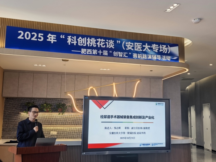 10月21日下午,由安徽省转化医学研究院(新型研发机构)主办,合肥科创肥西运营管理有限公司、肥西县人才科创发展集团有限公司共同承办的2025年“科创桃花谈”(安医大专场)——肥西“创智汇”赛前路演辅导活动,在桃花科创谷举行。